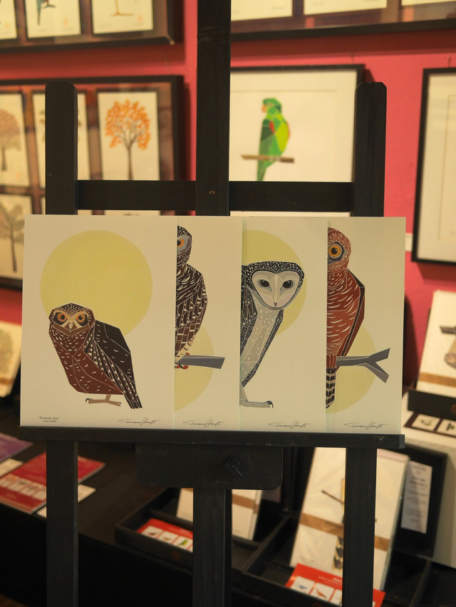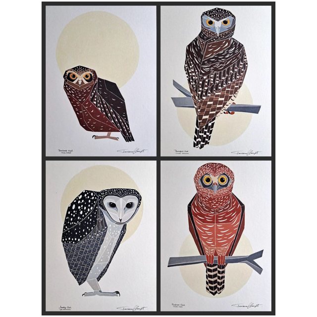O conjunto "CORUJAS AUSTRALIANAS" inclui as 04 (quatro) reproduções: